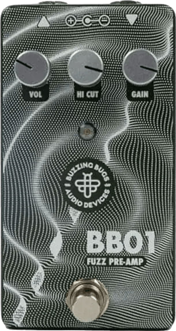The Buzzing Bugs FX BB01 Fuzz Pre-Amp is a hybrid transistor/op-amp fuzz effects pedal designed to emulate the character of the VOX AC "Normal" channel. This fuzz stompbox features a continuously variable gain control, delivering tones ranging from light, amp-style drive to high-gain, speaker-like fuzz. The BB01 offers flexible drive shaping for use in a variety of signal chains and musical styles.
