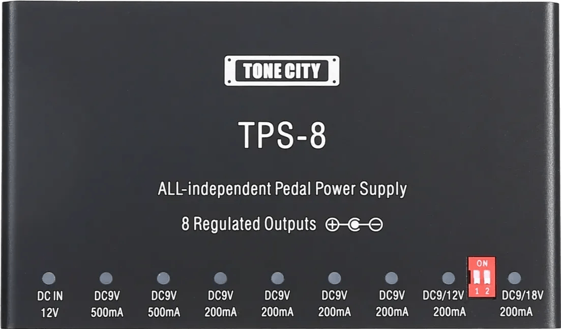 The TONECITY TPS-8 is a high-quality multi-output isolated pedal power supply designed to deliver consistent and reliable power for effects pedalboards. Part of the TPS series, this unit features all-new isolation technology, providing true electrical isolation across every output. The TPS-8 offers robust current capacity for powering a full range of analog and digital effects pedals, with comprehensive circuit protection. Each output ensures minimal noise interference and stable performance for demanding setups.