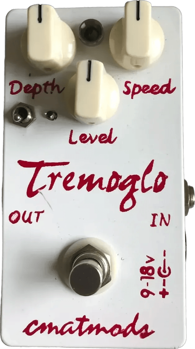 The Tremoglo is an analog tremolo effects pedal designed to deliver vintage-style amplitude modulation. The circuit is fully analog, providing a warm, amp-inspired tremolo effect. Depth, speed, and level controls allow for detailed adjustments to the modulation rate and intensity. The pedal includes a three-way toggle switch for additional functionality: in the up or down position, it activates or deactivates a flashing LED indicator, which pulses in time with the tremolo speed; in the center position, the Tremoglo operates as a clean boost or preamp, bypassing the depth and speed controls. This effects pedal features true bypass switching and glows in the dark for increased visibility.