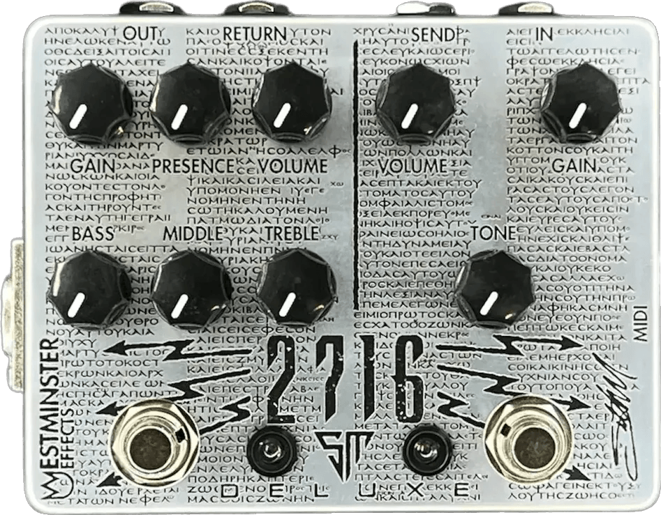 The Westminster Effects 2716 Seth Morrison Deluxe is a multi-function overdrive and preamp effects pedal designed to deliver a wide tonal palette and flexible routing options. Combining two circuits—the Physician and 2716 V2—this pedal offers diverse overdrive and boost capabilities. The integrated effects loop provides additional versatility for pedalboard integration. An XLR output with built-in cabinet simulation enables direct connection to PA systems or interfaces.