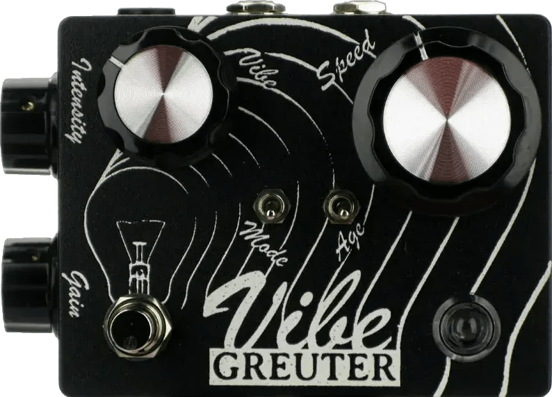 The Greuter VIBE is a 4-stage phaser effects pedal designed to recreate classic 1960s rotary speaker modulation. It utilizes a specialized LFO waveform for a distinct modulation character, capable of producing both rich chorus tones and nuanced vibrato sounds. The circuit is designed to respond dynamically to player input, ensuring clarity and presence within a band setting while maintaining articulate modulation.