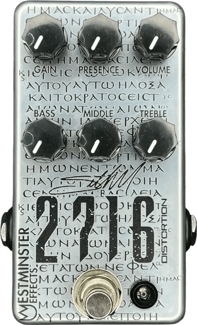 The Westminster Effects 2716 Seth Morrison v2 is a high-gain distortion pedal engineered for detailed amp-style tones. This model, developed with Seth Morrison, is designed to emulate the qualities of high-gain tube amplifiers. Version 2 features an updated analog circuit that enhances low-frequency response and delivers a cleaner, brighter high end. Controls include standard gain, tone, and level for easy adjustment of drive and output. True bypass switching ensures signal clarity when the pedal is off.