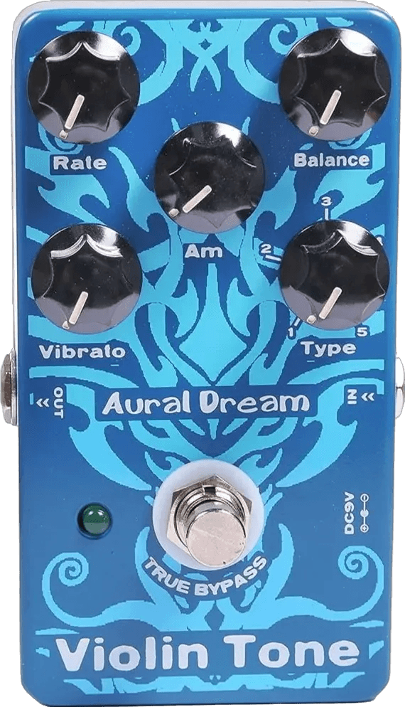 The Aural Dream Violin Tone Synthesizer is a violin synth guitar effects pedal designed to convert your instrument’s signal into violin-inspired sound using advanced tone synthesis algorithms. This pedal offers five selectable violin effects and includes amplitude modulation, a vibrato module with adjustable depth and rate controls, and a built-in swell function. The unit operates with true bypass switching, features a durable alloy enclosure, and utilizes low-noise, low-power circuitry. Battery operation is available using the included battery clip cable.