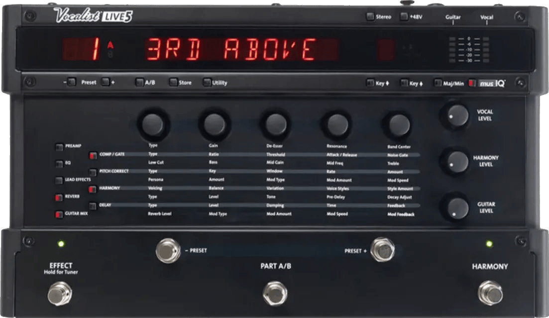 - Vocal harmony effects processor with musIQ® automatic key and chord detection