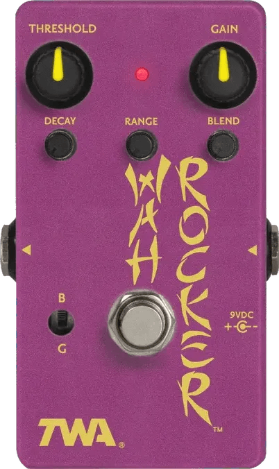 The TWA WR-03 Wah Rocker is an analog envelope filter pedal that reproduces the classic auto-wah tones of the original Guyatone Wah Rocker, enhanced with modern updates. Featuring true bypass switching via TWA’s S3™ relay system, this envelope filter pedal offers Threshold, Decay, Range, and Gain controls for shaping the sweep and level response. The Blend control allows for mixing dry and effected signals, optimizing low-end clarity. A dedicated Guitar/Bass switch provides selectable voicing for both standard and bass instruments. The WR-03 envelope filter is designed for versatile tone-shaping, combining vintage-style filtering with improved functionality.