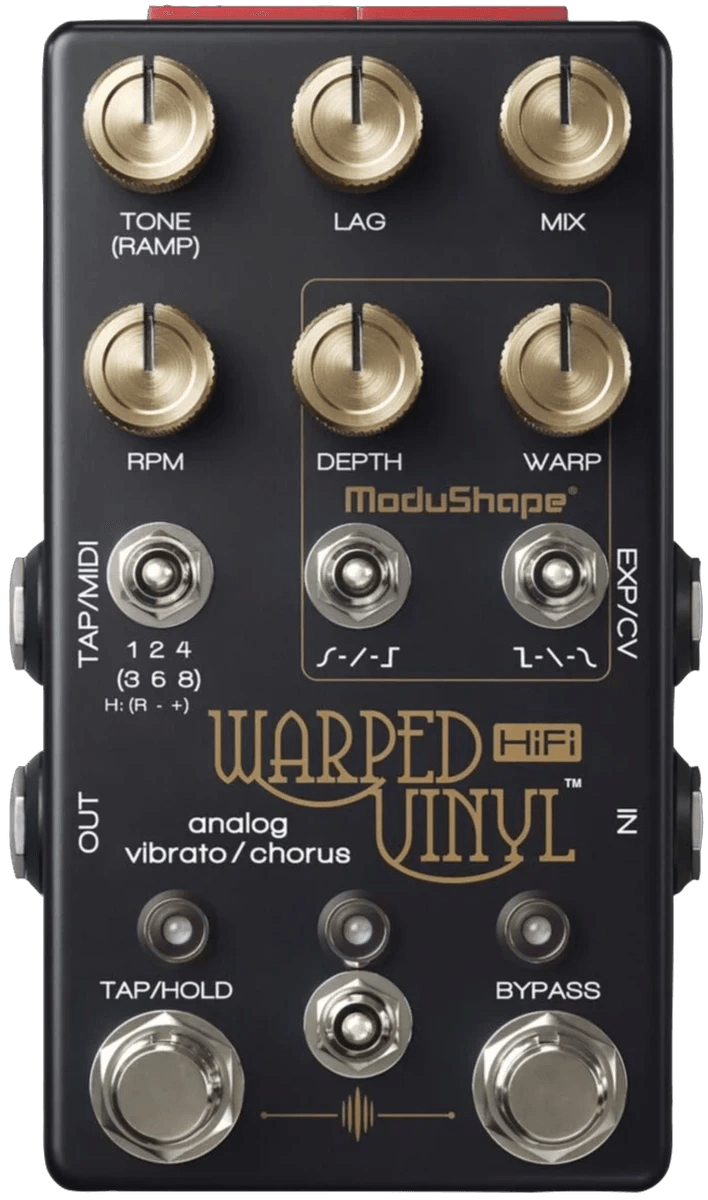 The Chase Bliss Audio Warped Vinyl HiFi is an analog chorus/vibrato effects pedal designed to deliver true pitch modulation with a fully analog signal path. This modulation stompbox provides a wide range of pitch-shifting and chorus textures, utilizing a lag knob for expanded chorus control and reduced noise for a cleaner signal. Updated from earlier versions, the HiFi model introduces brighter, more transparent modulation tones. The pedal features true bypass switching and offers detailed control over modulation parameters for versatile analog modulation.