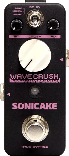 WAVE CRUSH is a digital bit crusher and sample rate reducer effects pedal designed for degrading audio signals and producing Lo-Fi effects. It offers three selectable modes: a standard downsampler mode for digital bit reduction, a radio mode for emulating vintage radio Lo-Fi textures, and a gramophone mode that recreates gramophone-style sound artifacts. The pedal is designed for creative sound manipulation, allowing for a range of digital distortion and vintage audio character.