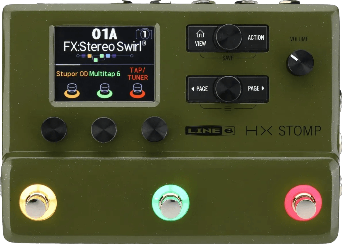 - Multi-effects processor pedal with amp, cab, and digital effects models
