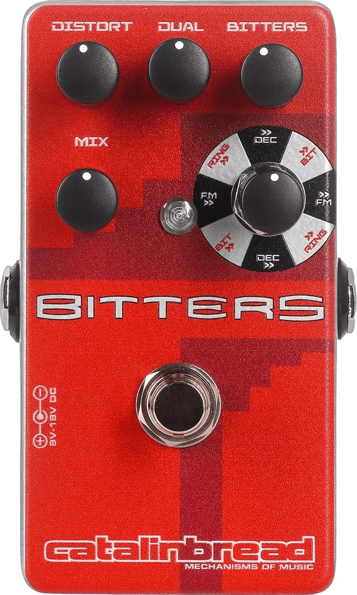 The Catalinbread Bitters effects pedal is a multi-effects stompbox designed to deliver distortion, phaser, and four selectable sound-mangling effects. The Bitters pedal features dedicated controls for Distortion and Phaser, along with a rotary selector for four different sound modulation types, enabling a broad range of sonic textures from chorus to intense noise. A Mix control allows for precise blending between dry and processed signals. This Catalinbread effects pedal is designed for use on pedalboards or in studio setups, and offers versatile tone shaping suitable for various music gear applications.