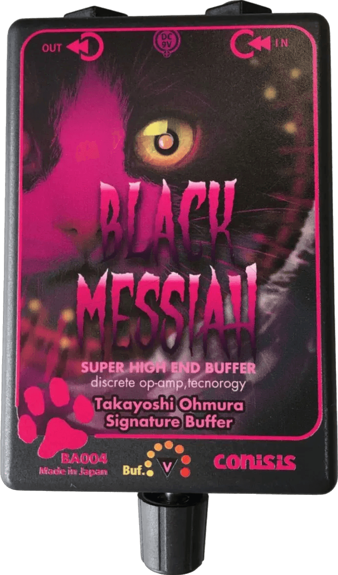 The Conisis Black Messiah ver.2 BA004 is a signature model buffer amplifier effects pedal designed by Conisis, featuring discrete op-amp circuitry used in high-end mastering audio equipment. This buffer amp boosts the current by a factor of 30,000 without altering the input voltage, maintaining clear audio signal integrity through extended cable runs or complex pedalboards. Developed in collaboration with Takayoshi Ohmura, it is engineered to prevent signal loss and transmit detailed nuances across the entire frequency range.