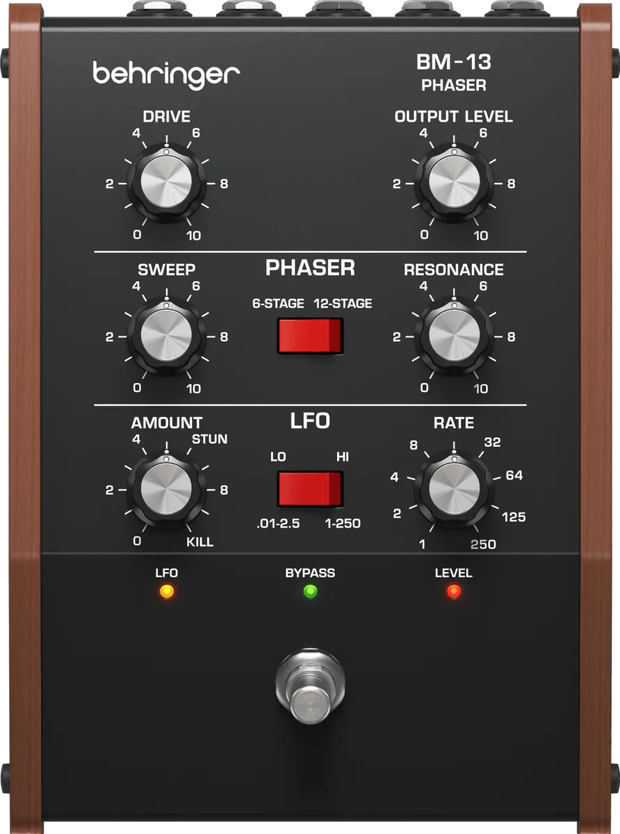 - All-analog phaser effects pedal with 6-stage and 12-stage modes