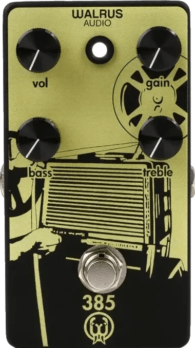 The Walrus Audio 385 Overdrive is an overdrive effects pedal designed to deliver amp-inspired drive tones with independent bass and treble controls. Based on the sonic characteristics of classic film projectors, this overdrive pedal separates the bass and treble adjustments rather than combining them behind a single tone control, offering a broader tonal range. This allows for precise boosts and cuts in both low and high frequencies, enabling mid-frequency contouring for a variety of drive textures. The 385 Overdrive operates with a straightforward control layout for user-friendly operation and is designed for both studio and live performance.