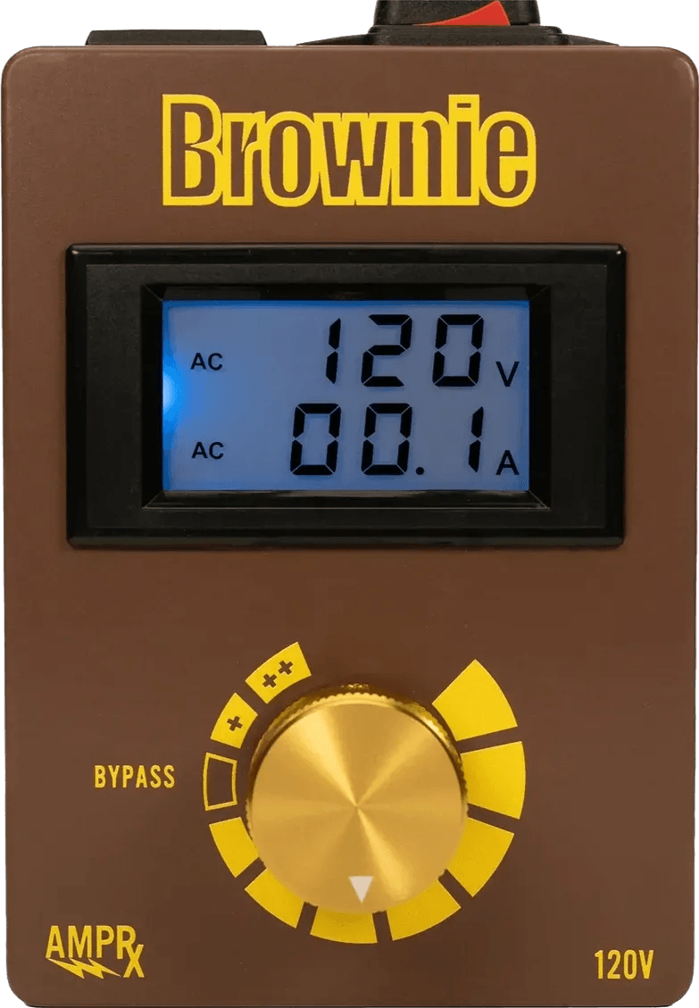 The AmpRx Brownie is a voltage controller designed for precise voltage optimization and equipment protection. Built for modern tube amplifiers, this unit allows users to both increase and decrease AC line voltage, helping to achieve consistent performance and tonal stability while safeguarding valuable gear. The Brownie’s voltage optimization capability ensures reliable operation, even under fluctuating power conditions.