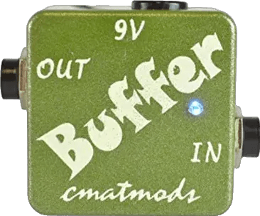 The CMAT Mods Buffer is a compact signal buffer pedal designed to maintain consistent sound quality across long cable runs or large pedalboards. This buffer pedal minimizes signal loss and treble roll-off by optimizing the impedance ratio between the instrument and connected pedals or amplifiers. Engineered for transparent operation, the CMAT Mods Buffer features straightforward, plug-and-play functionality with no additional controls.