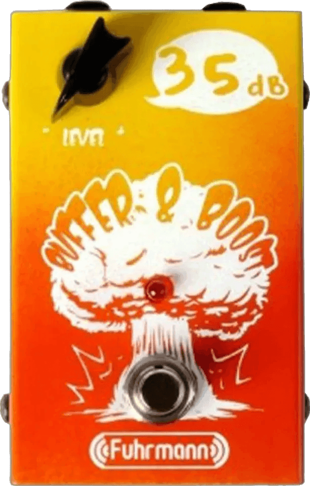 The Fuhrmann Buffer & Boost is an analog buffer and boost effects pedal designed to maintain signal integrity and provide adjustable volume control in pedalboard signal chains. The buffer circuit is engineered to restore clarity and prevent high-frequency loss, especially when using multiple pedals or long cable runs. The boost section offers engaged users the ability to increase or decrease output level, suitable for dynamic changes or compensation of signal drop, with a responsive single knob layout. True bypass switching ensures the signal remains unaffected when the effect is disengaged.
