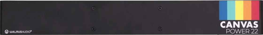 The Walrus Audio Canvas Power 22 is a pedalboard power supply that provides 22 fully isolated outputs, each delivering up to 500mA of regulated 9V power for effects pedals. Two selectable outputs offer adjustable voltage options—9V, 12V, or 18V—supporting high-voltage pedals. This unit also includes a USB-C port for powering external devices such as smartphones or tablets. The design is focused on clean, reliable power distribution for a range of effects pedals and accessories.