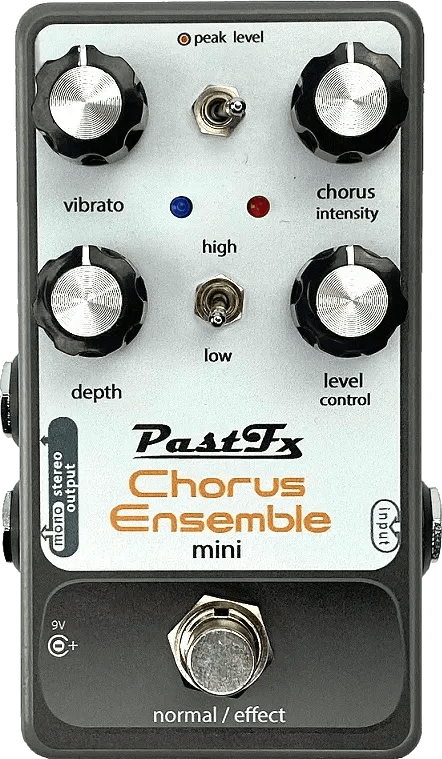 The PastFx Chorus Ensemble Mini (CEM) is an analog chorus pedal designed as a compact recreation of the vintage BOSS® CE-1, offering classic chorus and vibrato effects in a reduced footprint. Retaining the tonal characteristics of the original, the CEM is built to operate on standard 9V DC pedal power while using bipolar voltage internally, eliminating the need for mains-powered operation and fuses. This chorus pedal provides musicians access to rich modulation effects inspired by the renowned CE-1, with a modern approach to reliability and convenience.