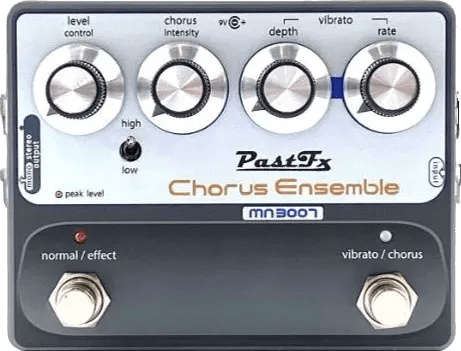 The PastFx Chorus Ensemble MN3007 is an analog chorus effects pedal designed as a precise recreation of the classic 1970s/1980s MN3007-based EHX Clone Theory. This pedal integrates circuit elements from both the original Reticon SAD1024 version and subsequent MN3007 models, offering added options addressing known limitations of earlier units. Features include a "VIB/Flange" mode selector, with additional implementation of the "Edge" (bright) switch found on vintage SAD1024 pedals. The analog signal path is built around the MN3007 bucket brigade device, delivering the characteristic modulation associated with vintage chorus effects.
