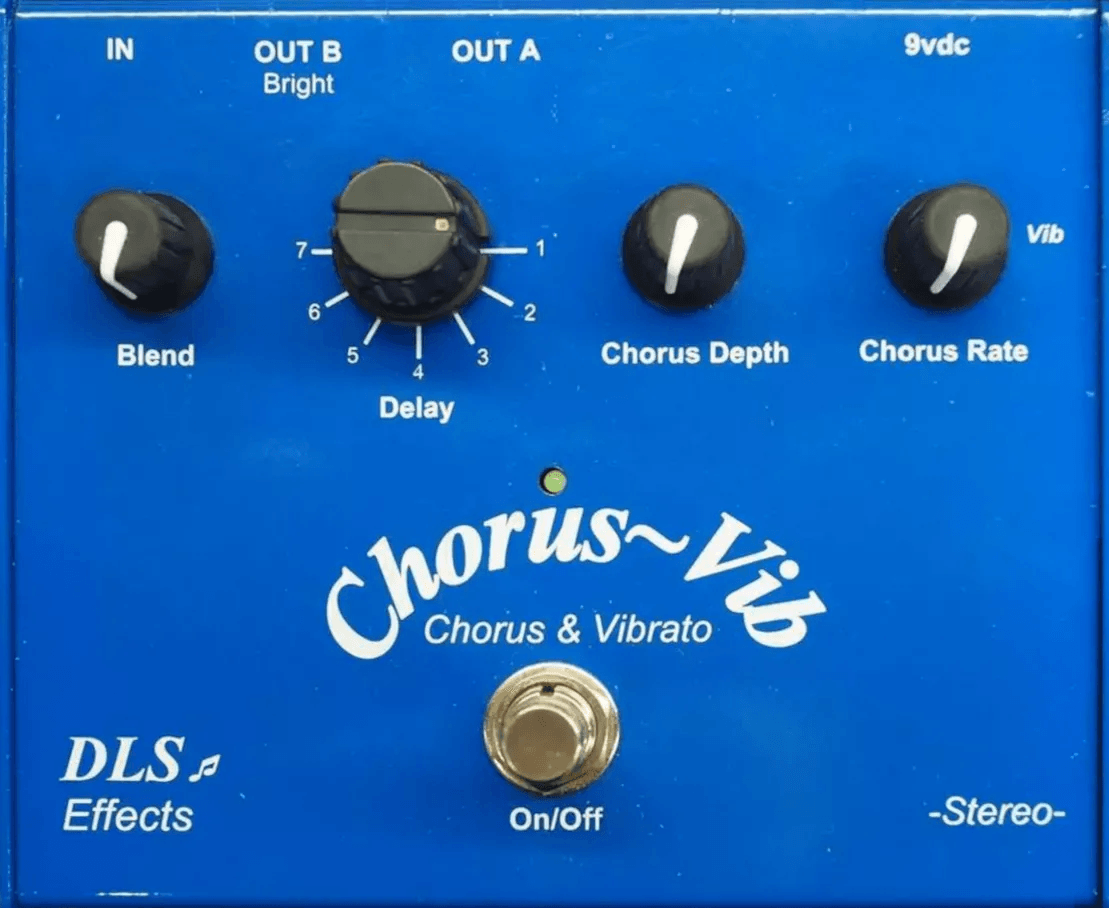 The DLS Effects Chorus-Vib is a multi-mode modulation pedal that provides chorus, vibrato, and rotary speaker effects. This analog modulation pedal is engineered for high durability with a solid steel chassis, metal footswitches, and robust potentiometers. It offers a wide range of sonic textures suitable for various musical needs, allowing users to switch between lush chorus tones, expressive vibrato, and rotating speaker simulation. Designed for reliable performance in live and studio settings, the DLS Effects Chorus-Vib features straightforward controls for easy sound shaping and consistent output.