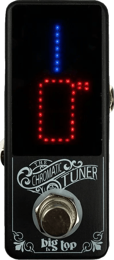 The Big Top FX Chromatic Tuner Mini is a compact chromatic tuner effect pedal for precise pitch tuning. This pedal features an all-analog true bypass signal path, ensuring that your signal remains unaffected when the pedal is disengaged. It includes a large, easy-to-read digital display for clear visual feedback during tuning. Housed in a durable metal chassis, the Big Top FX Chromatic Tuner Mini is designed for reliable performance on pedalboards in a variety of settings.