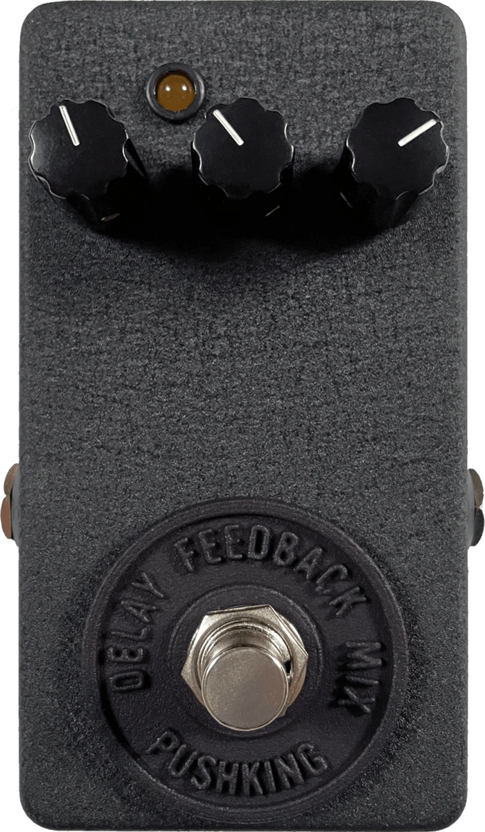 The Pushking Pedals 606 Organic Delay is an analog delay pedal designed to provide delay effects that maintain the core characteristics of the input signal. The pedal delivers delay repeats that enhance depth and space in the sound while preserving clarity. Its controls offer users the ability to adjust delay time, feedback, and mix to shape the desired effect. This effect pedal is equipped with true bypass switching to ensure signal integrity when disengaged. Standard 1/4” input and output jacks provide compatibility with a wide range of setups.