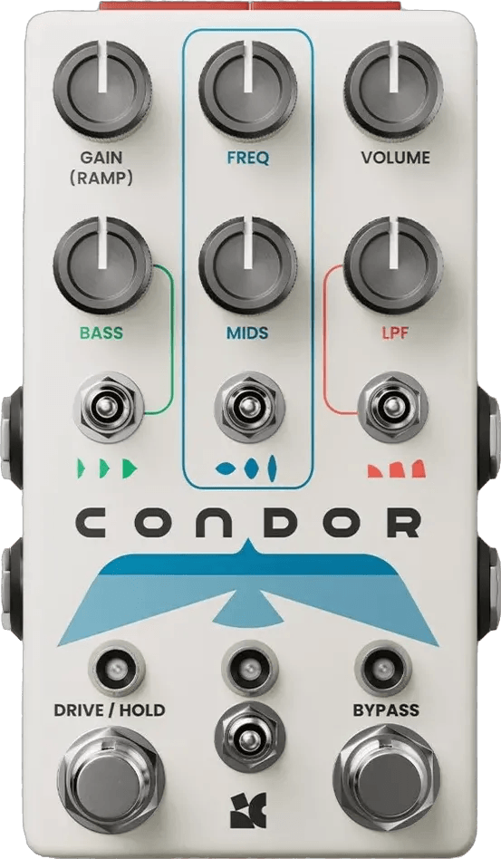 The Chase Bliss Condor HiFi is an analog EQ pedal that integrates filter and overdrive functions, providing detailed sound shaping for a wide range of tonal options. This multi-function Chase Bliss effects pedal utilizes the OPA1662 op-amp and features an internal voltage boost to deliver up to 30V of clean headroom. The pedal offers analog EQ controls, resonant filter sweeps, and variable overdrive in a single unit.