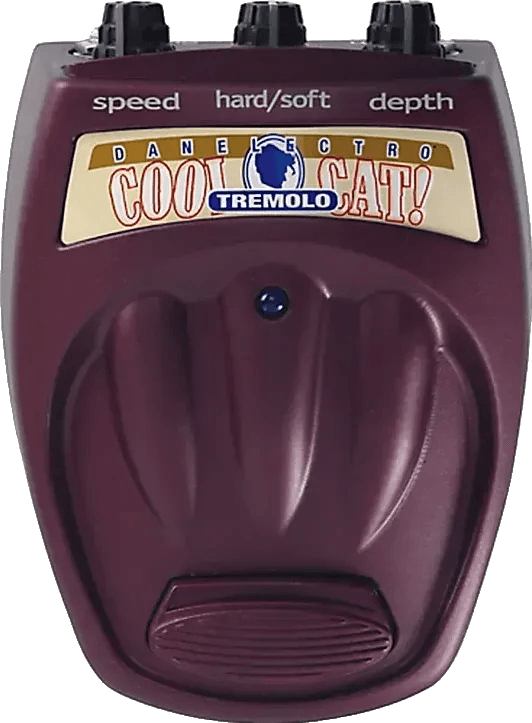 The Danelectro Cool Cat Tremolo CV-1 is an analog tremolo effects pedal designed to deliver classic modulation with user control over intensity, speed, and mix. Equipped with true bypass switching, the pedal ensures signal transparency by maintaining the original instrument tone when deactivated. The unit includes metal jacks and a metal chassis for increased durability. Core controls provide flexibility in shaping tremolo waveforms without altering the instrument’s inherent character.