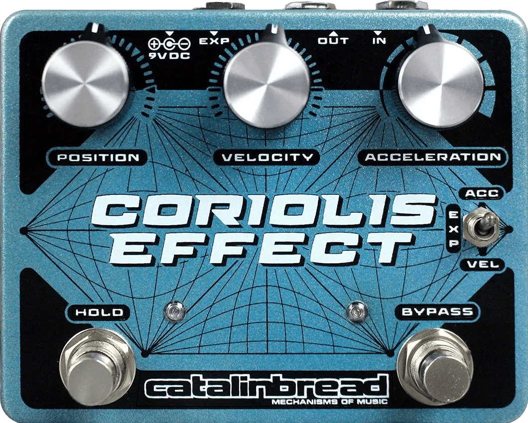 The Catalinbread Coriolis Effect is a multi-effect pedal designed to deliver sustainer, wah, filter, pitch shifting, and harmonizing effects in a single stompbox. This Catalinbread effects pedal features a flexible control set that enables a broad spectrum of sonic manipulation, from nuanced tonal adjustments to pronounced pitch changes and layered harmonies. The Coriolis Effect is equipped with true bypass switching and supports extensive real-time control via its expression pedal input, providing dynamic performance options. Adjustable knobs and switches allow precise shaping of the pedal’s effect parameters for customized sound design.