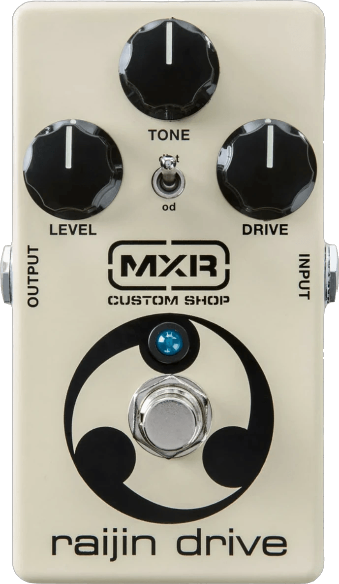 The MXR CSP037 Raijin Drive is an overdrive and distortion effects pedal that delivers classic Japanese-inspired drive tones with a broadened frequency response and enhanced flexibility. Designed for a wide tonal range, the CSP037 provides smooth overdrive and saturated distortion, accessible via a simple control layout. This MXR effects pedal features separate Drive, Tone, and Level knobs, allowing users to finely adjust gain structure and EQ. Built with true bypass switching, the Raijin Drive ensures signal clarity when bypassed.