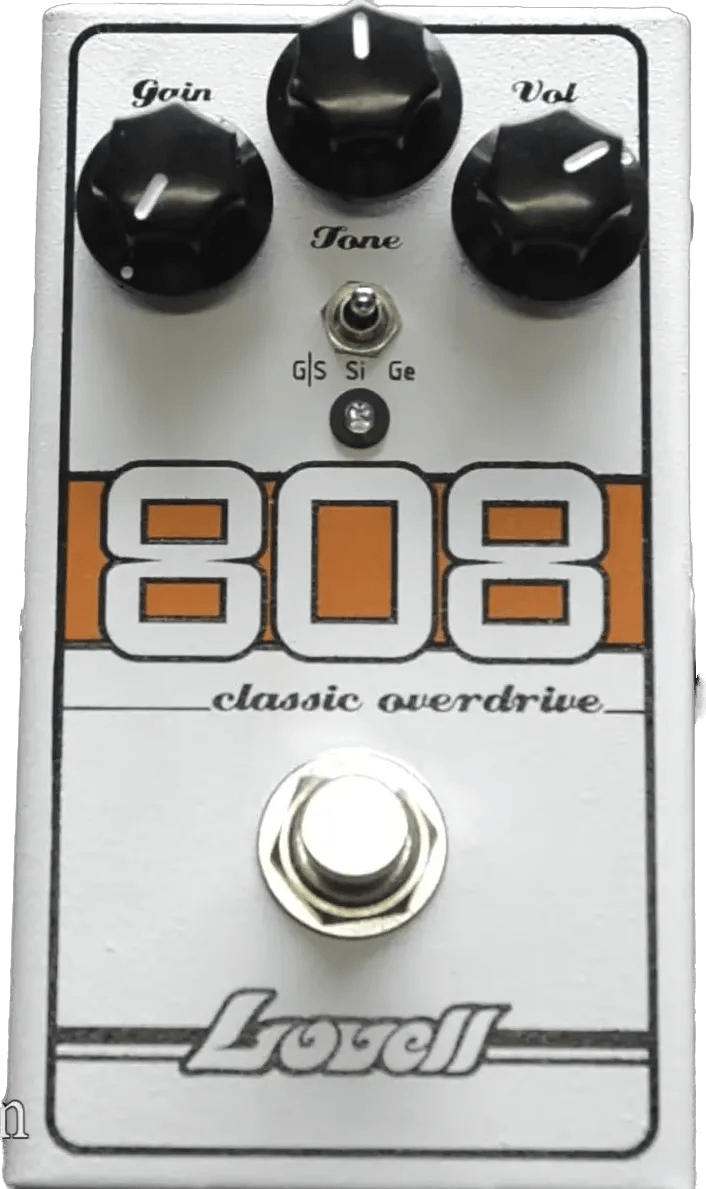 The Lovell 808 is an overdrive effects pedal designed to emulate and enhance the classic Tube Screamer circuit. It features a discrete JFET input for increased sensitivity and a MOSFET buffered output to preserve signal quality throughout your effects chain. The pedal offers an external three-way clipping switch, allowing for selection between Germanium diodes, Silicon diodes, or a hybrid option for different overdrive characteristics. The Lovell 808 aims to deliver improved tone, extended frequency response, and greater flexibility while maintaining the recognizable 808 overdrive sound.