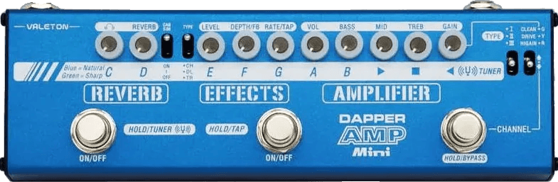 The Valeton Dapper Amp Mini is a compact multi-effects pedal that functions as an amp modeling stompbox with integrated effects. Designed for streamlined operation, the unit provides high-quality amp simulation alongside essential effects in an easy-to-use pedalboard format. Each section hosts dedicated controls for precise adjustment of amp tone, drive, and onboard effects. The Dapper Amp Mini features standard input/output and supports pedalboard-friendly power requirements.
