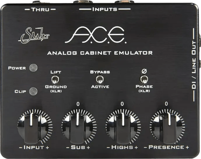 The Suhr A.C.E. (Active Cabinet Emulator) is an analog guitar cabinet emulator pedal designed for capturing the characteristics of a mic’d speaker cabinet in recording and live settings without a microphone. This analog cabinet emulator uses a fully analog signal path, employing a Multi-Stage Filtering (MSF) network to produce realistic speaker cabinet simulations. The design allows for direct connection to audio interfaces, mixers, or recording devices, offering an alternative to traditional miking setups. No digital signal processing is used; all cabinet emulation is achieved through analog circuitry.