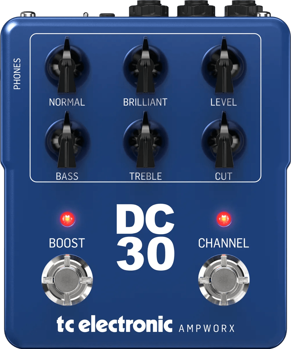The tc electronic DC30 PREAMP is a preamp effects pedal designed to emulate the iconic tone of a vintage British amplifier. This preamp pedal delivers classic British amp voicing, offering dynamic response and harmonic richness suited to a variety of music applications. Built with user-friendly controls, it provides gain, bass, treble, and volume adjustment for precise tone shaping. The DC30 PREAMP features true bypass switching for signal integrity when the pedal is not engaged.