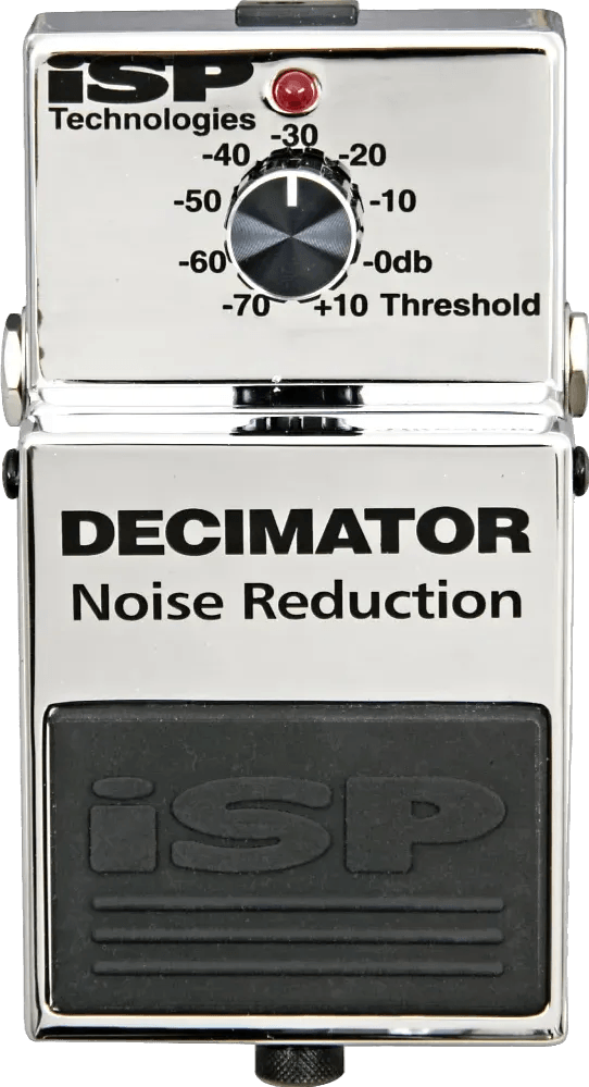 The ISP Technologies Decimator is a noise reduction effects pedal that utilizes Time Vector Processing to manage unwanted noise while maintaining signal clarity. This noise gate pedal tracks the envelope of the input signal, enabling immediate response to short, fast-decaying notes and smooth, consistent control over sustained notes. The Decimator noise suppressor is designed for transparent operation without altering your tone, providing clean noise gating for a variety of playing styles.