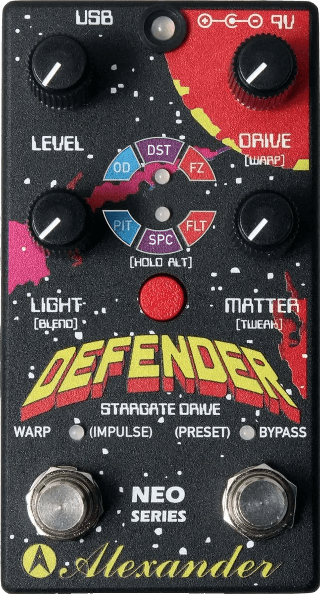 The Alexander Defender is a digital distortion effects pedal, designed to deliver versatile and modern distortion sounds with a compact pedalboard footprint. This Alexander effects pedal employs the brand’s Neo Series platform, offering advanced digital processing for distortion and drive tones that move beyond classic analog circuits. The Defender pedal features a range of core controls, including Gain, Tone, and Level, along with additional parameters and the signature Neo footswitch functionality. True bypass switching ensures signal clarity when the effect is disengaged. The pedal provides mono input and output connectivity, making it suitable for integration into standard pedalboard setups.