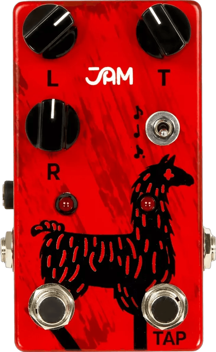 The Jam Pedals Delay Llama MK3 is an analog delay pedal designed to deliver vintage-inspired echo and modulation effects using BBD (bucket brigade device) chips modeled after the Panasonic MN3205. This delay pedal features a simple three-knob layout, offering up to 600ms of delay time and controls for delay, repeats, and level. The MK3 version introduces tap tempo with subdivision functionality and a hold function for self-oscillation. Users can also select between true bypass and buffered trails modes. The Delay Llama MK3 is compatible with bass instruments.