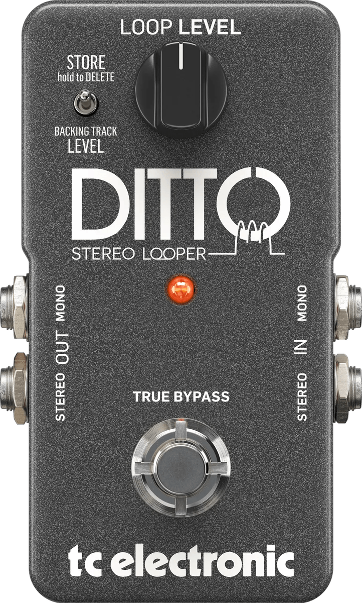 The TC Electronic Ditto Stereo Looper is a stereo looper pedal designed for layering and looping audio in real time. This effects pedal features true bypass switching and provides both mono and stereo input/output connectivity. The pedal allows for unlimited overdubs and undo/redo functionality, and supports high-quality 24-bit audio processing. The StarJam feature gives access to downloadable loops recorded by professional musicians, enabling users to play along or expand on existing creations. Optimized for straightforward, hands-free operation, the Ditto Stereo Looper is compatible with a wide range of instruments.