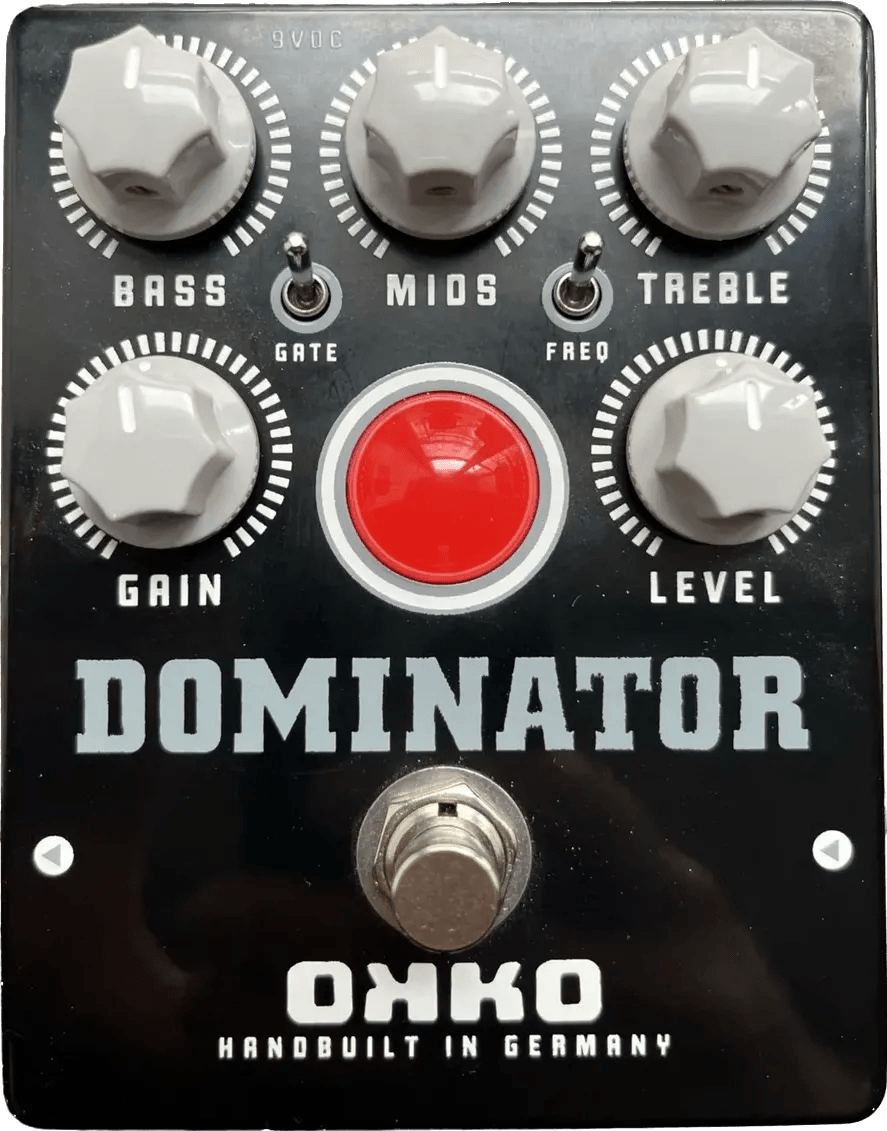 The OKKO FX Dominator MKII Black is a high-gain distortion effects pedal designed for aggressive metal tones. This pedal features an active 3-band EQ section with a selectable mid-frequency control, allowing users to sculpt the distortion sound with precision. The MKII version introduces a dual-switchable noise gate, providing both “hard” and “soft” modes: the hard setting offers an immediate cutoff for tight chugging, while the soft mode maintains a natural decay for sustained notes.