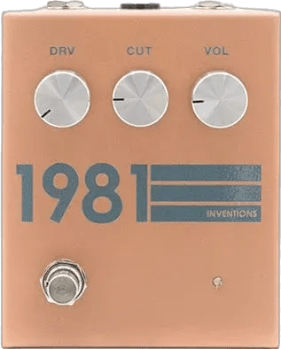 The 1981 Inventions DRV - Clay is an analog distortion and preamp boost effects pedal, built in a steel enclosure and designed for versatile tonal shaping. This 1981 Inventions effects pedal features independent distortion and preamp boost circuits, powered internally at 18V for increased headroom. Controls for level, drive, and cut allow detailed adjustment from transparent boost to saturated distortion. The pedal uses Switchcraft 11 open frame jacks and a quiet soft touch relay-based true bypass switching system.