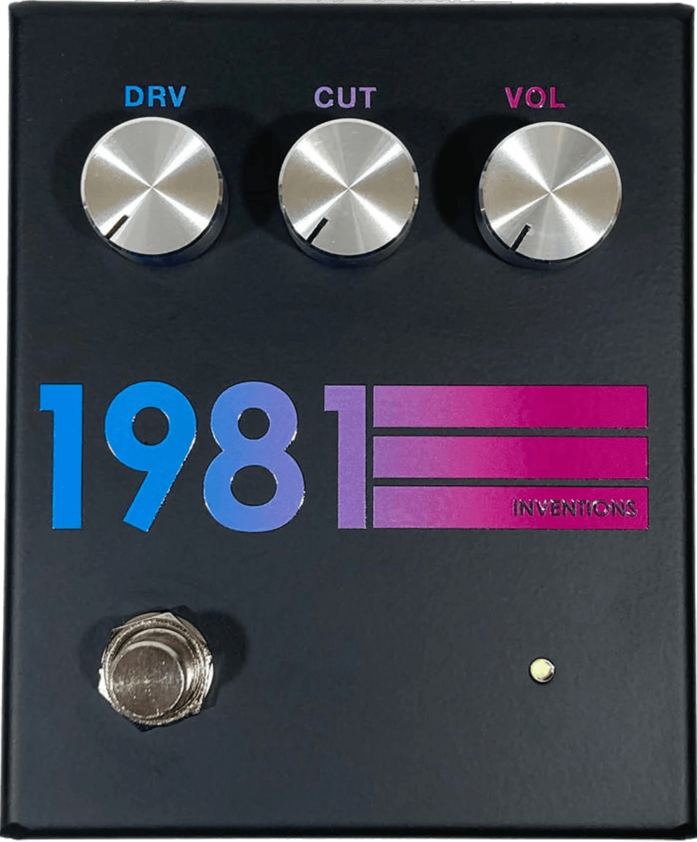 The 1981 Inventions DRV Hyperfade Black is an analog distortion pedal designed for use with guitar and bass. Housed in a steel enclosure, the DRV combines a vintage-inspired preamp boost and a distortion circuit, running at 18 volts internally via a voltage regulator. It utilizes high-quality components, including Switchcraft 11 open-frame jacks and a soft-touch relay-based switching system for true bypass functionality. A collaboration with Jon Ashley of Bondi Effects, the DRV features independent control over gain, level, and tone, allowing for precise adjustment from subtle boost to saturated distortion. The circuit provides distinctive midrange response and analog warmth, suitable for applications ranging from low-gain drive to heavy distortion. Standard 9V DC power supply required.
