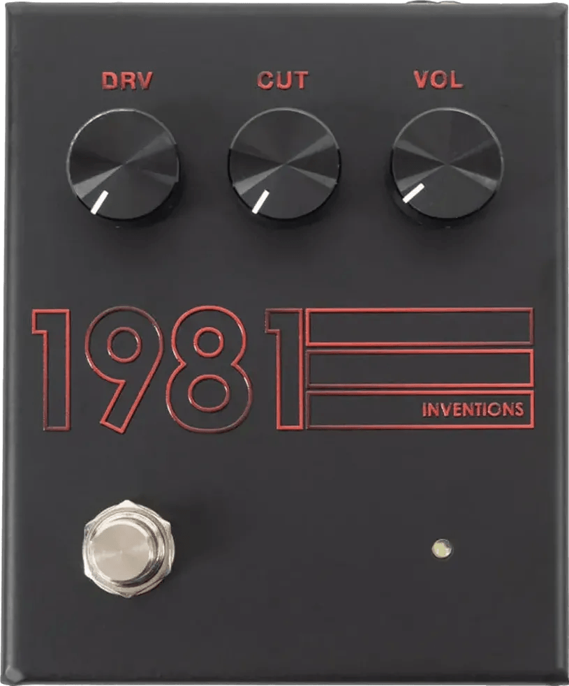 The 1981 Inventions DRV Stranger Things Edition is a distortion pedal designed to deliver a wide range of gain structures, from low-gain drive to high-gain distortion, utilizing a dual-circuit layout for both distortion and preamp boost. Housed in a custom steel enclosure, this effects pedal features quality hardware such as Switchcraft 11 open frame jacks and a quiet soft-touch relay-based true bypass switching system. The pedal operates at 18 volts internally via an on-board voltage regulator, supporting increased headroom. Controls allow for adjustment of drive, level, and tone parameters. The design is intended for versatile audio shaping, with specific attention to clarity, warmth, and midrange emphasis.