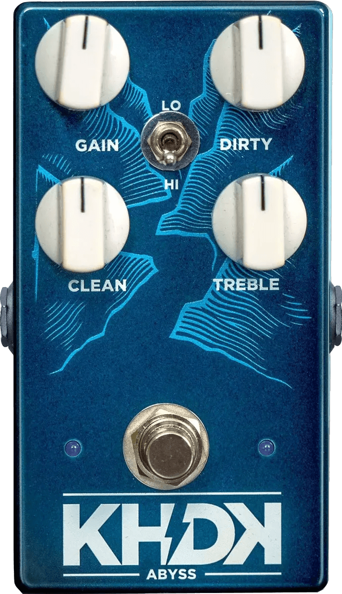 The KHDK Abyss is an overdrive effects pedal designed for flexible tone shaping using bi-amp technology. This dual-path design separates your signal into two discrete circuits: one retains the clean, unprocessed signal while the other generates an overdriven tone. Independent volume controls for the Clean and Dirty channels enable precise mixing of the original and overdriven signals. The two signals are blended at the output, allowing the original dynamics and character to be combined with increased fullness and drive.