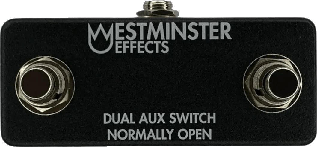The Westminster Effects Dual Aux Switch Normally Open is a dual footswitch controller designed for remote switching and control of compatible effects pedals and devices. Each footswitch operates independently, offering momentary switching functionality via a standard TRS cable. This normally open configuration supports broad compatibility with brands such as Eventide, Source Audio, Line 6 HX Stomp, and others requiring normally open footswitch inputs. The unit enables channel switching, preset changes, and multi-effect engagement, providing expanded utility in a pedalboard or studio setup.