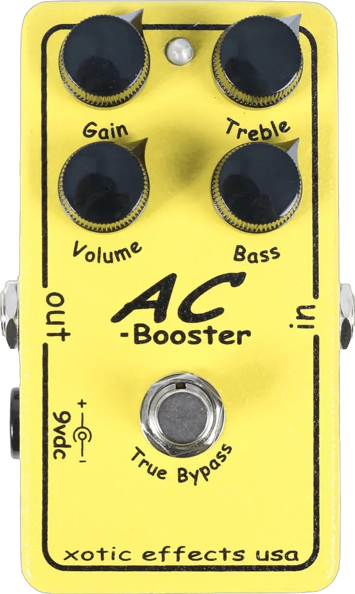 The Xotic AC Booster is a transparent overdrive pedal designed to enhance signal with increased gain and presence. This Xotic effects pedal delivers a warm boost, providing additional drive without losing clarity in the tone. Featuring true bypass switching, the pedal ensures no coloration or loss of signal when disengaged. Power options include a 9V battery or an optional AC adaptor for flexible rig integration.