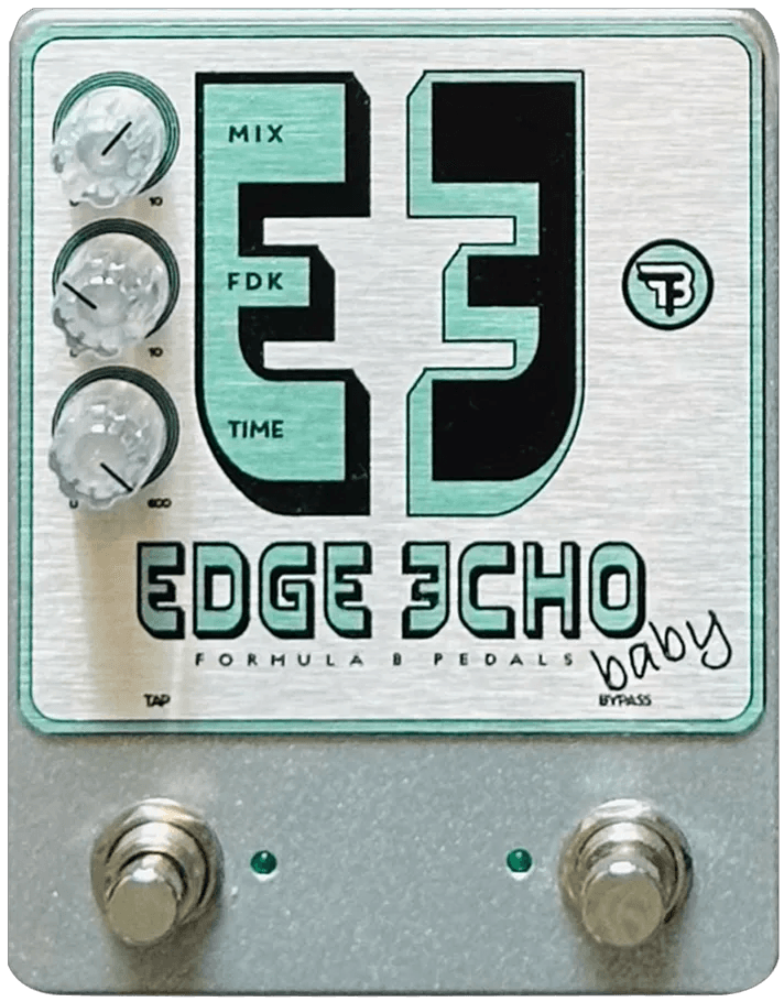 The Formula B Edge Echo Baby is an analog delay pedal designed to emulate classic vintage tape echo sounds. This effects pedal draws inspiration from rare delay units, including the Farfisa AS2006 and Binson Echorec, to deliver a warm, balanced delay. Modern circuitry is used to ensure reliability and consistent tone, crafting repeats that remain smooth without excessive sharpness or lo-fi degradation. The Edge Echo Baby features simple onboard controls to adjust delay time, repeats, and mix, allowing for easy integration into pedalboards. True bypass switching ensures your signal remains unaffected when the pedal is disengaged.