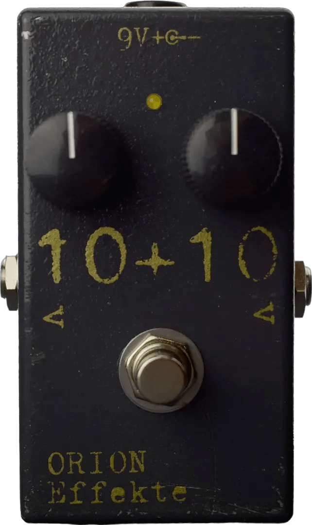The Orion Effekte 10 + 10 is a dual fuzz stompbox featuring two modified “10 Fuzz” circuits combined in a single enclosure. This unique fuzz pedal is designed to deliver a highly saturated, metallic distortion character. The signal path allows players to stack the two fuzz circuits for increased gain and tonal complexity. The 10 + 10 fuzz pedal is equipped with straightforward controls to adjust the intensity and interaction between the circuits. True bypass switching is included for transparent signal flow when the pedal is disengaged.