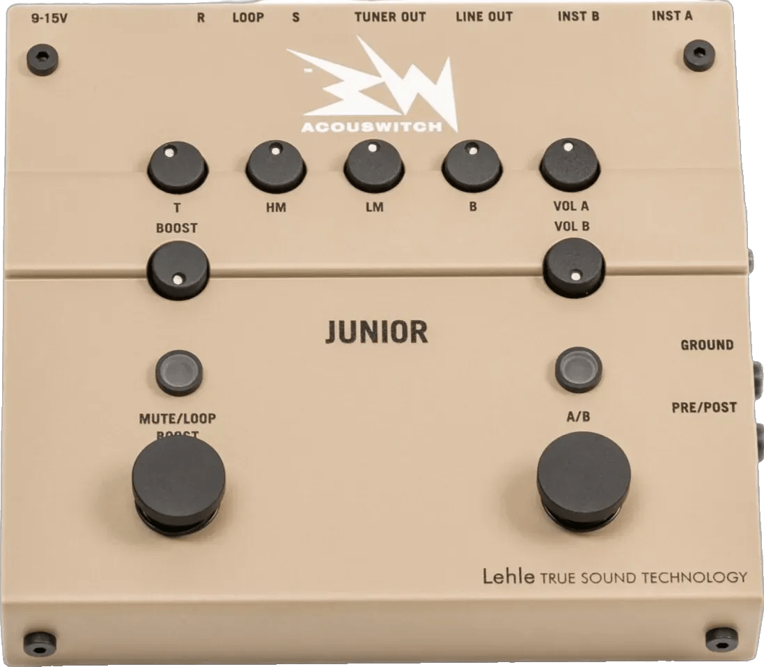The LEHLE Acouswitch Junior is a signal routing pedal designed for managing multiple electric and acoustic instruments within a single pedalboard setup. This ABY switcher pedal features two independent high-impedance inputs, allowing users to connect and control electric and acoustic signals. Musicians can seamlessly switch or combine channels and choose the output destination—PA or amplifier—without physically rerouting cables. The Acouswitch Junior serves as a central hub for integrating different instrument types and controlling effects chains.