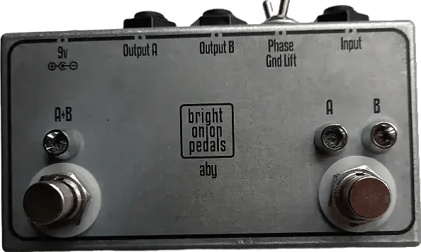 The Bright Onion Pedals Active ABY is an active ABY switch pedal that routes an input signal to either the A output, the B output, or both outputs simultaneously. This ABY switch uses an active circuit to prevent signal loss when splitting to both outputs. Output B is equipped with an isolation transformer to eliminate ground hum issues.