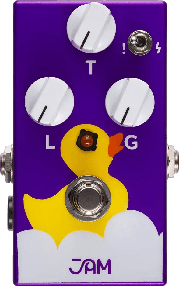 The Jam Pedals Eureka is a silicon transistor-based fuzz effects pedal designed to deliver a blend of germanium fuzz pedal midrange response and Muff-style fuzz distortion. This fuzz stompbox features a proprietary circuit architecture, incorporating a three-way toggle switch that incrementally increases low-frequency response and allows users to tailor the bass content. Depending on the input signal and toggle setting, the pedal is also capable of a gated fuzz effect. The Eureka is engineered to work compatibly across a variety of effect chains and maintains true bypass switching for transparent signal integrity when disengaged.
