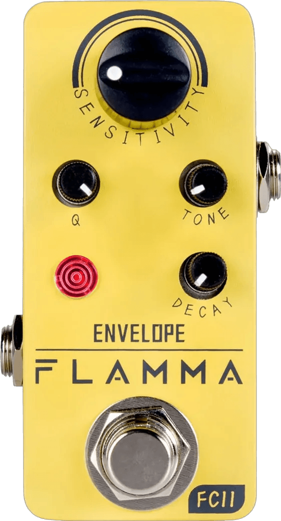The Flamma FC11 Envelope Filter pedal is an analog envelope filter effects pedal designed to produce auto-wah style modulation. This compact pedal features a fully analog signal path, delivering a warm, natural filter response. Adjustable Sensitivity, Tone, Decay, and Q controls allow precise shaping of the envelope’s sweep for a wide range of filter effects. The FC11 supports both guitar and bass instruments. True bypass circuitry ensures no signal loss or coloration when the pedal is disengaged.